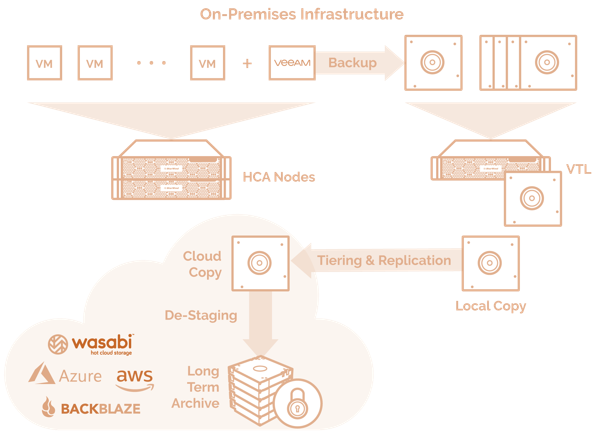 VTL for enterprise is suitable for organizations that want to use both physical storage and cloud storage to automate backup, archiving and media management. In this case, VTL provides cost-effective closed-loop storage for media assets that need to be stored on-site/locally. For backups and archives, VTL automates and replaces manual DR tape shipping and extends your existing DR plan by offering replication and cloud tiering and storage. StarWind can also help you migrate data to the cloud with a data migration solution from the cloud provider of your choice.