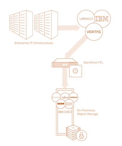 StarWind VTL leidžia organizacijoms pašalinti brangiai kainuojantį atsarginės juostos kūrimo procesą, tuo pat metu laikantis duomenų saugojimo ir archyvavimo teisės aktų reikalavimų, naudojant vietinę virtualią VTL biblioteką su galimybe perkelti duomenis į debesį (objektų saugojimo pakopa). Apsaugo atsargines duomenų kopijas nuo grėsmių, saugodama juos nuo išpirkos reikalaujančių programų atspariose virtualiose juostose. Atkartoja ir perkelia atsargines kopijas į AWS, Azure ar kitus viešuosius debesis, maksimaliai padidindama saugumą ir saugojimo sąnaudų efektyvumą. Vietinės saugyklos mastelį galima pakeisti naudojant bet kokį masyvą su objektų saugykla.