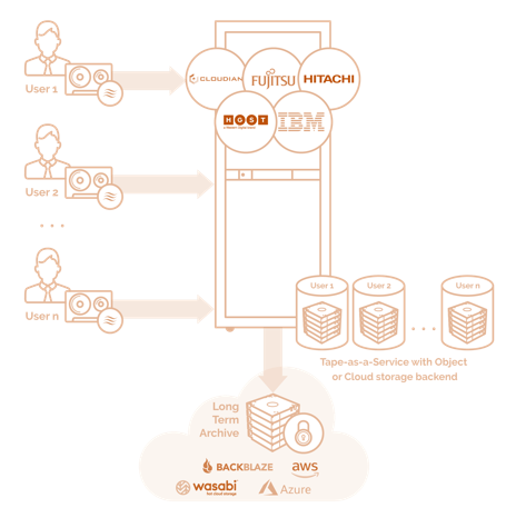 Tokiu atveju VTL leidžia paslaugų teikėjams siūlyti juostinį archyvavimą (TaaS), duomenų saugojimą (RaaS) ir atsarginį kopijavimą (BaaS) kaip paslaugą naudojant debesies ir objektų saugyklą, o ne fizinę LTO juostą. Paslaugų teikėjo licencijavimas suteikia patogią mokėjimo sistemą individualiems vartotojams. Be to, klientų duomenų perkėlimo paslaugos teikiamos nemokamai.